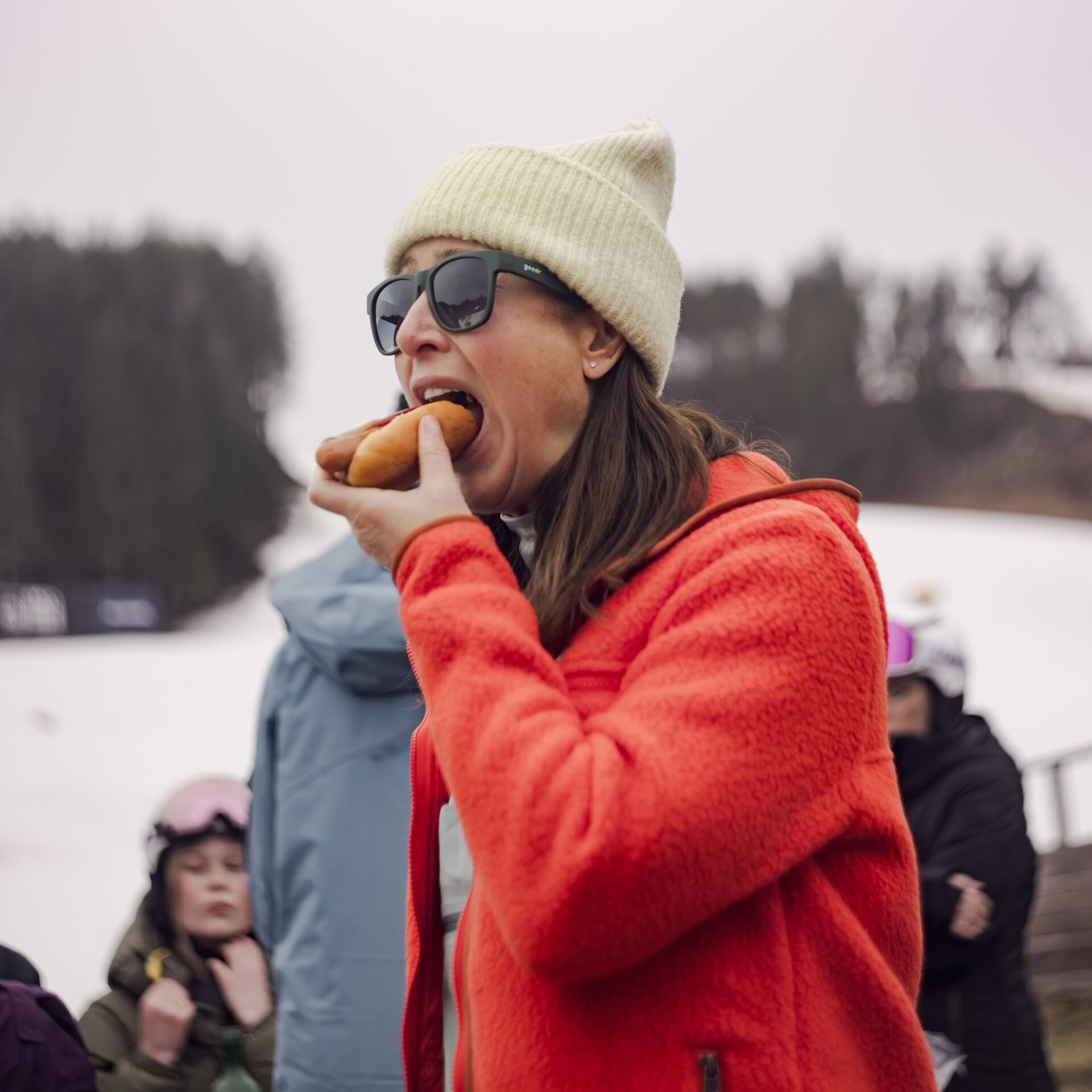 Vill ni hellre ha varm dryck och lättare lunch mellan åken? I värmestugan finns snabbmat och fika.